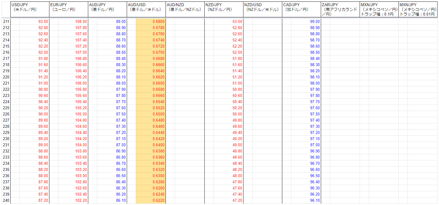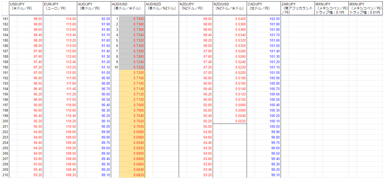 次回の注文追加(AUD/NZDのトラップ幅を半分にする)に備え、運用資金と注文を再検討することにしました。