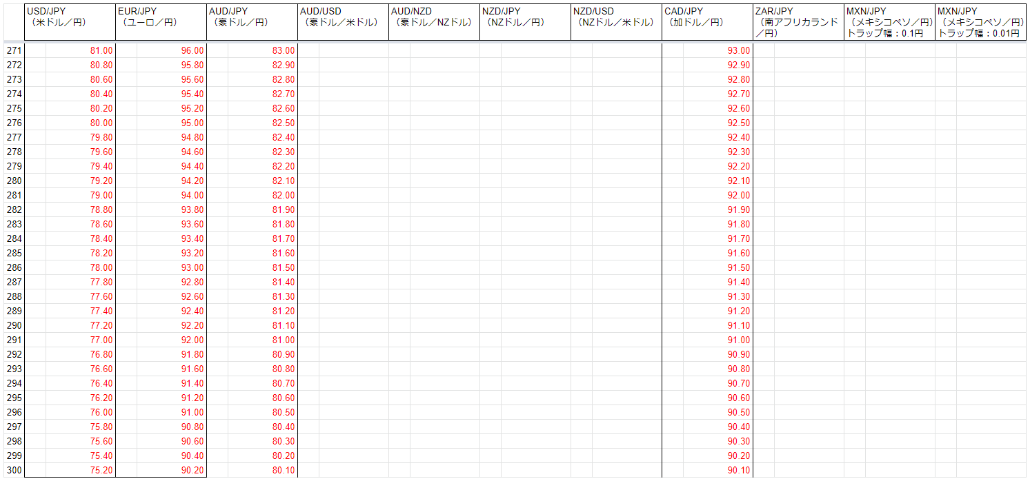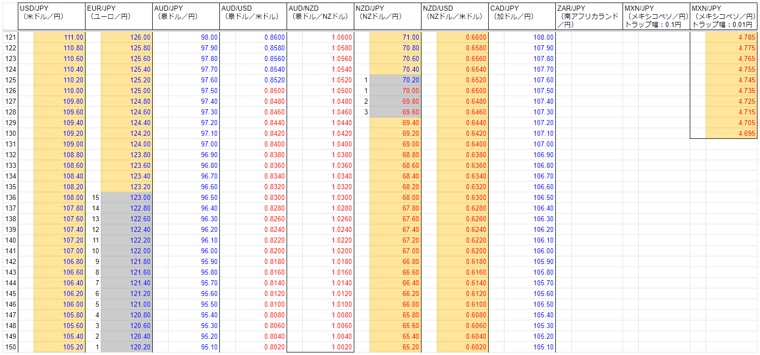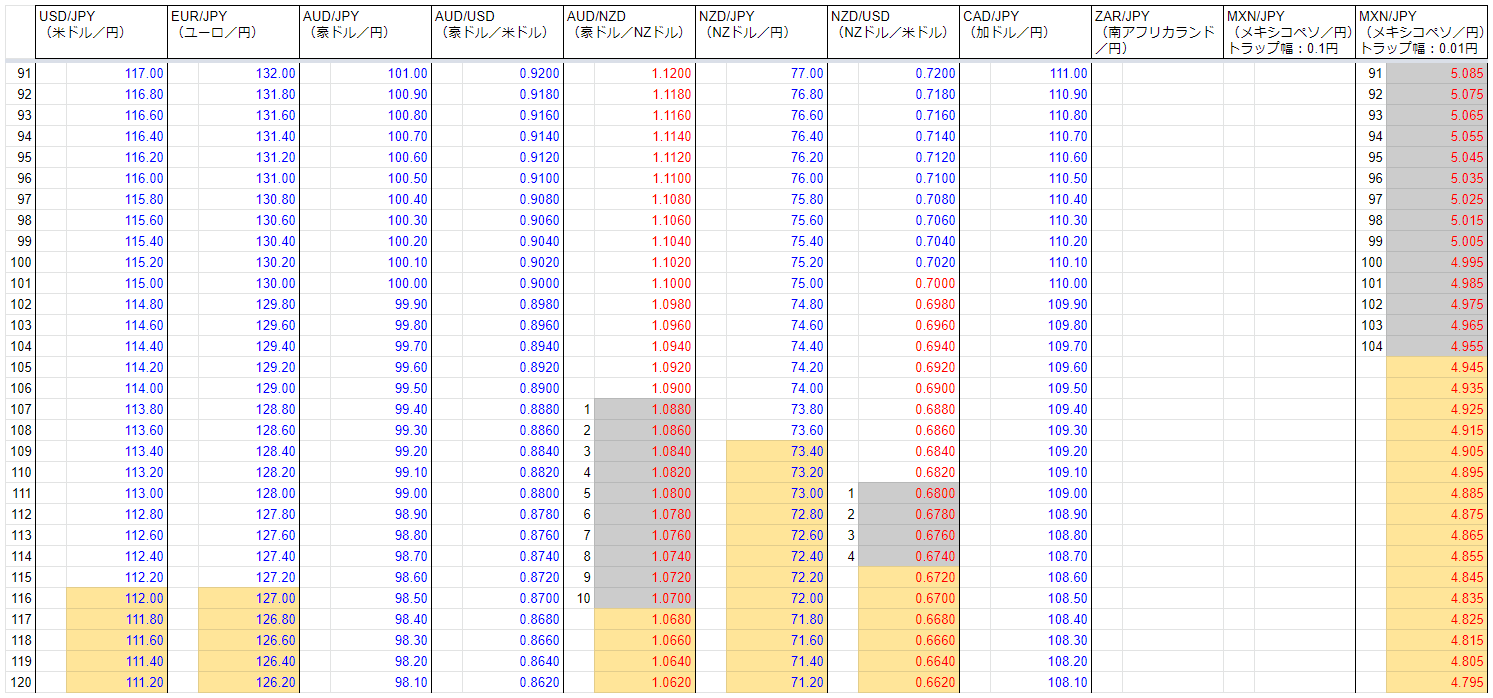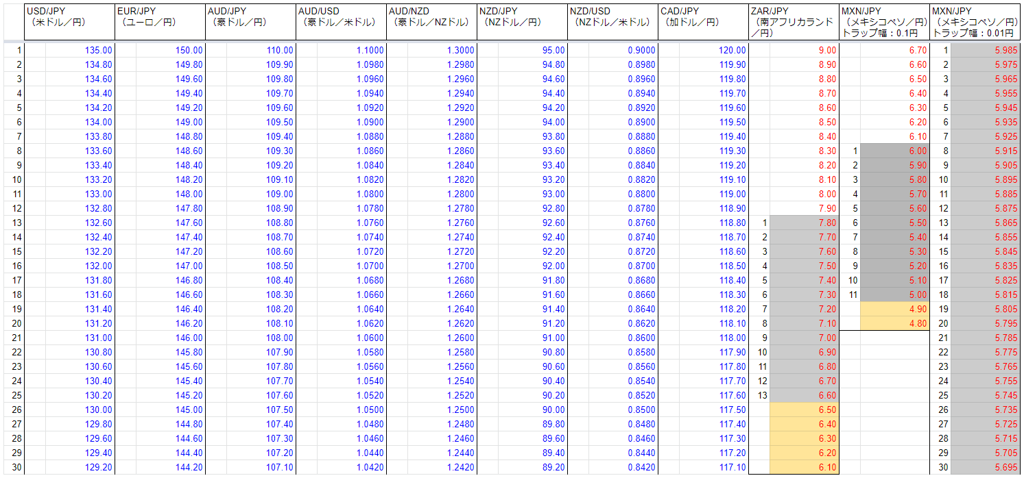 トラリピでの資産運用をはじめて1年が経ったので、現在の注文と保有ポジションを全書き出ししてみました。