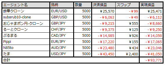 11月24日にポジションをすべて手動決済し、全エージェントの稼働を停止したので、マイメイトはしばらくお休みです。