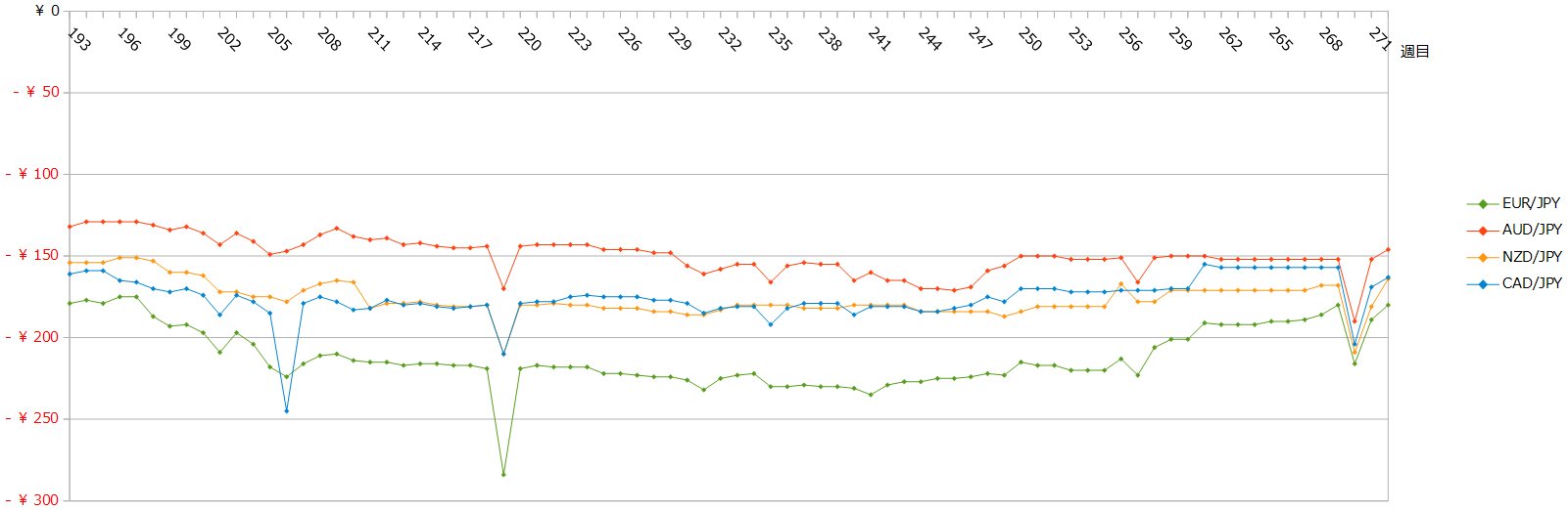 月末に限定せず、相場を見て、月1回を目安にクロス円の通貨ペアのポジションを落としていきたいと思っています。