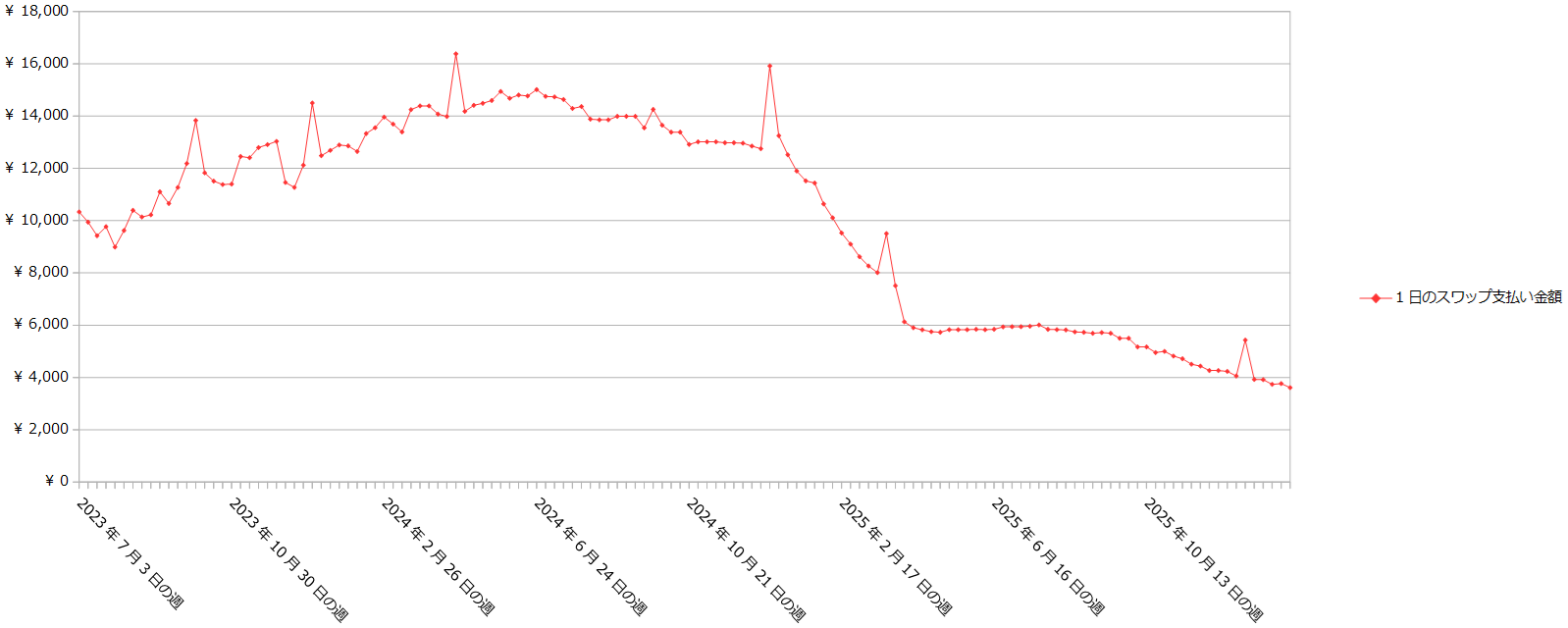 この1週間の未実現スワップ増減金額は+202,954円です(今週末:-4,345,691円、先週末:-4,548,645円)。